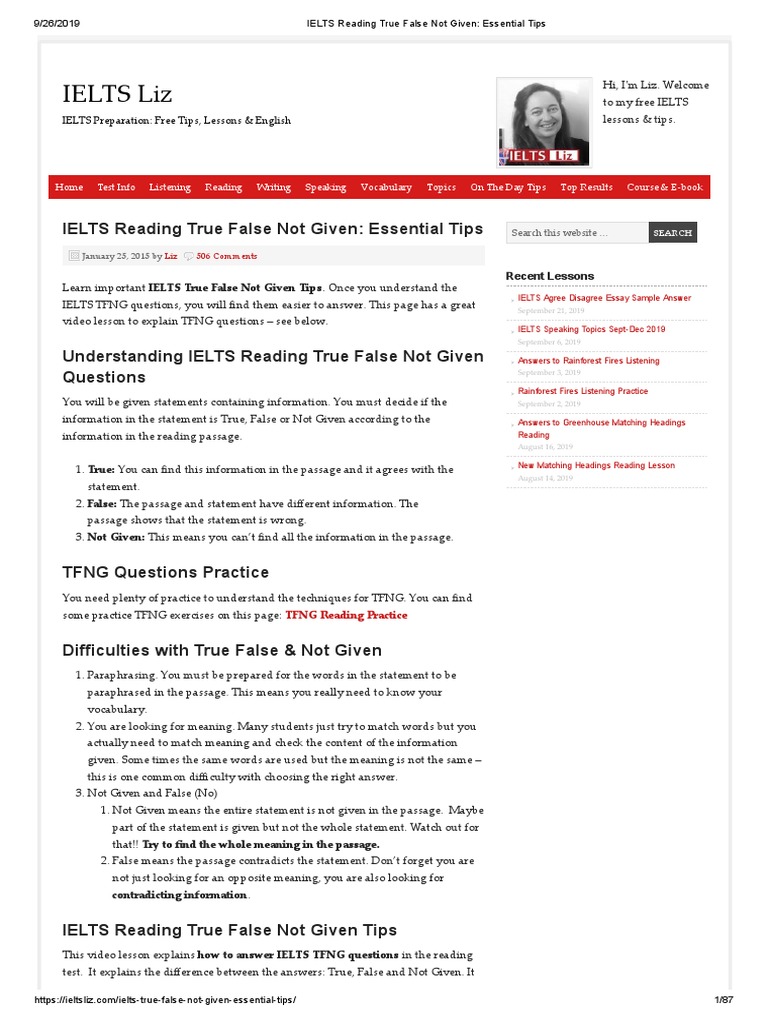 Ielts Reading True False Not Given Essential Tips Pdf Question International English Language Testing System